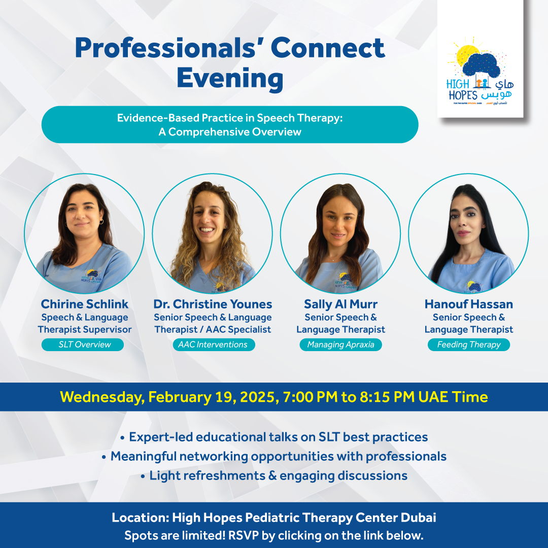 We are delighted to invite you to a special networking event hosted by High Hopes, designed to bring Dubai professionals in the field of pediatrics together to exchange ideas and make meaningful connections.